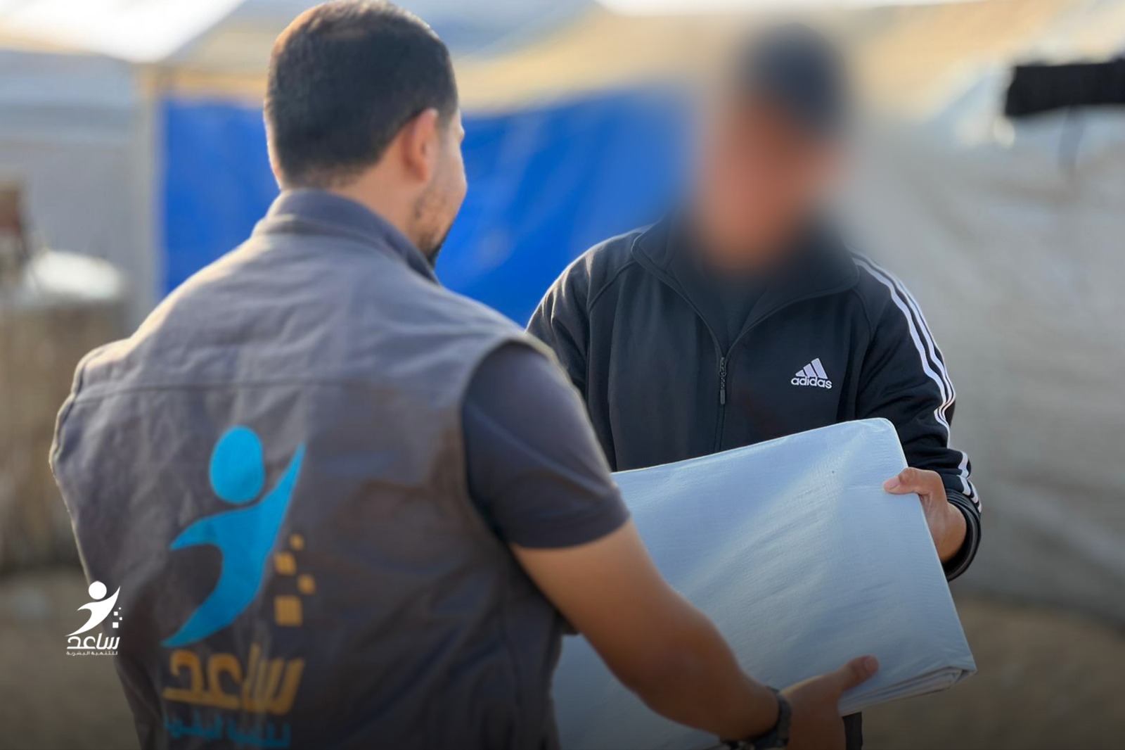 الحملة انطلقت بتوزيع شوادر لعائلات نازحة تعيش في خيام بالية، وبحاجة لترميم عاجل، لأنها ستكون عرضة للغرق في فصل الشتاء.