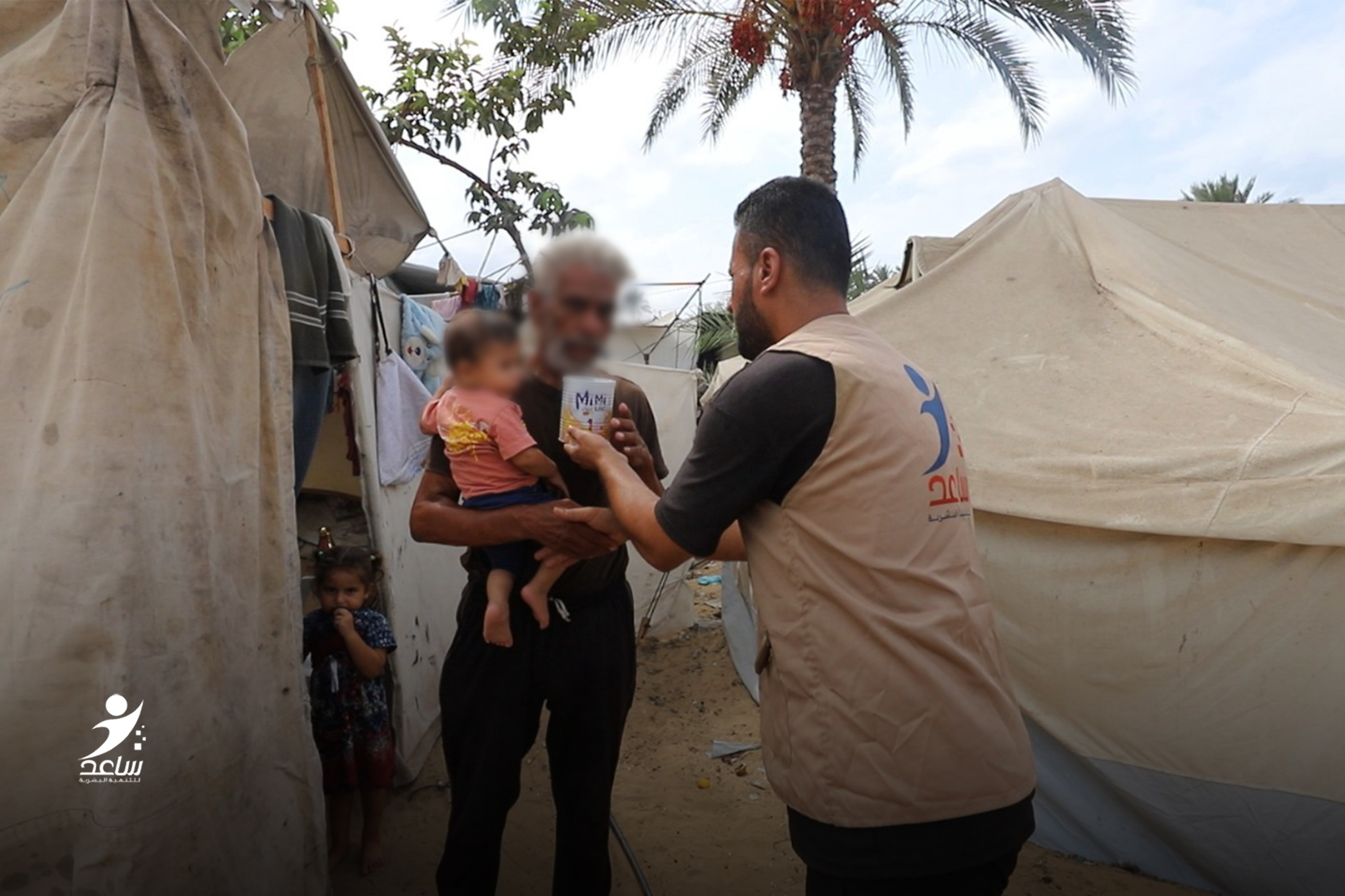بفضل الله تعالى، وزعت جمعية ساعد للتنمية علب حليب للأطفال في مخيم الإمام الشافعي بمنطقة القبة في مواصي خانيونس جنوب قطاع غزة.